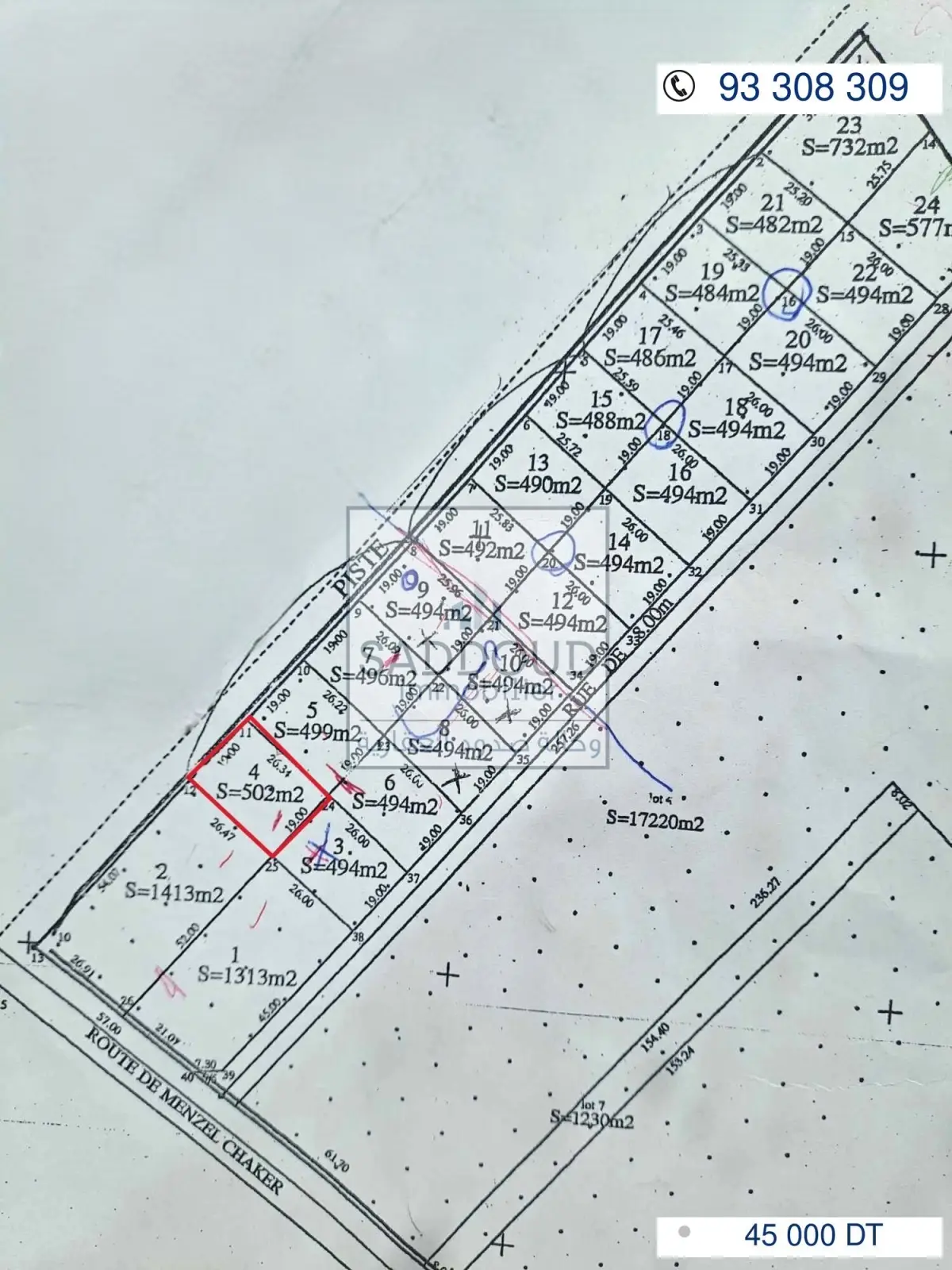 terrain à vendre 500m² à route menzel chaker km 14, à droite