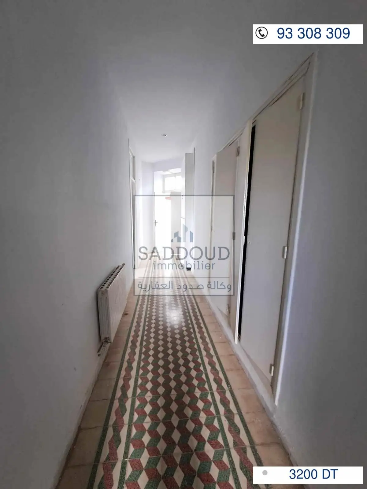 se compose de :2 hall+9 chambres a coucher+cuisine+salle de bain+salle de douche+2 garages+puits