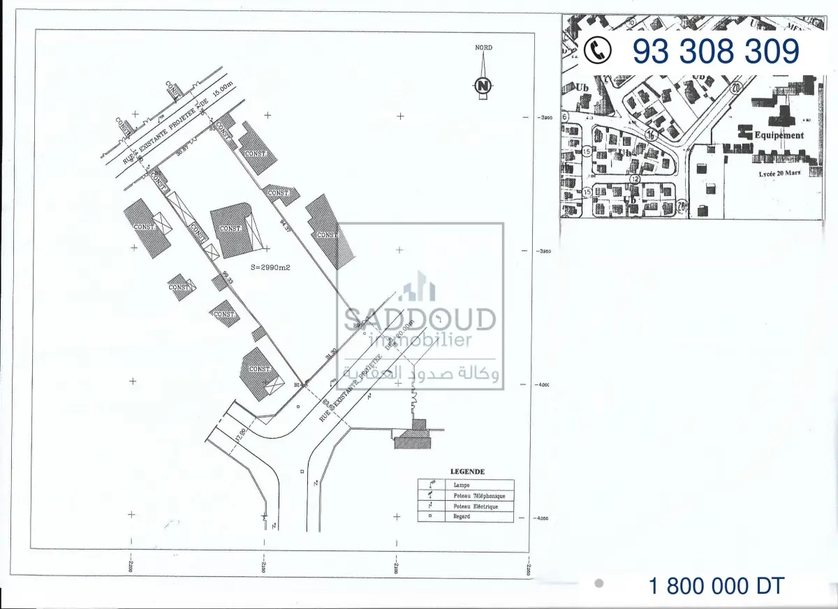 Terrain à vendre 2990m² à route Menzel Chaker km 1 a coté hôtel The Z