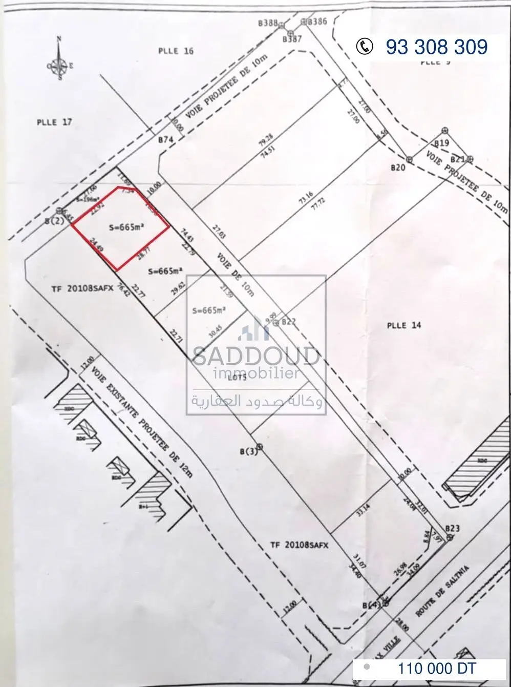 terrain 665m² à route saltnia km 7 100m de la route principale