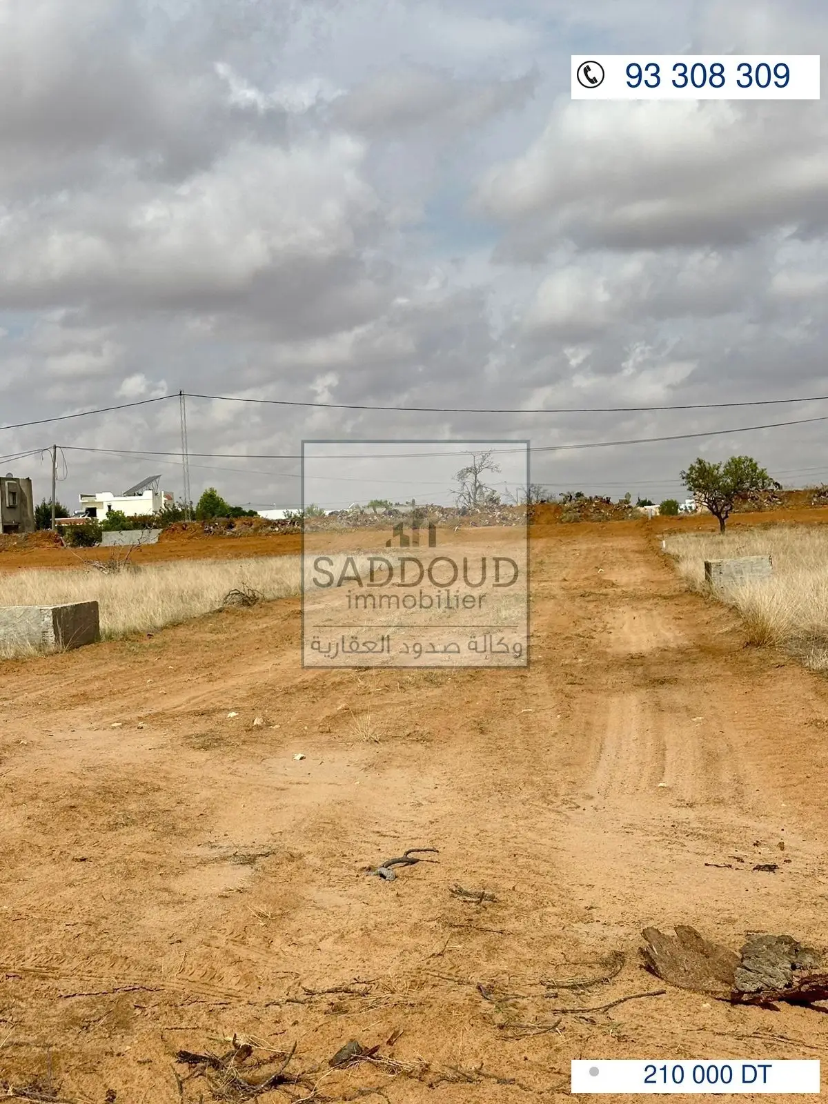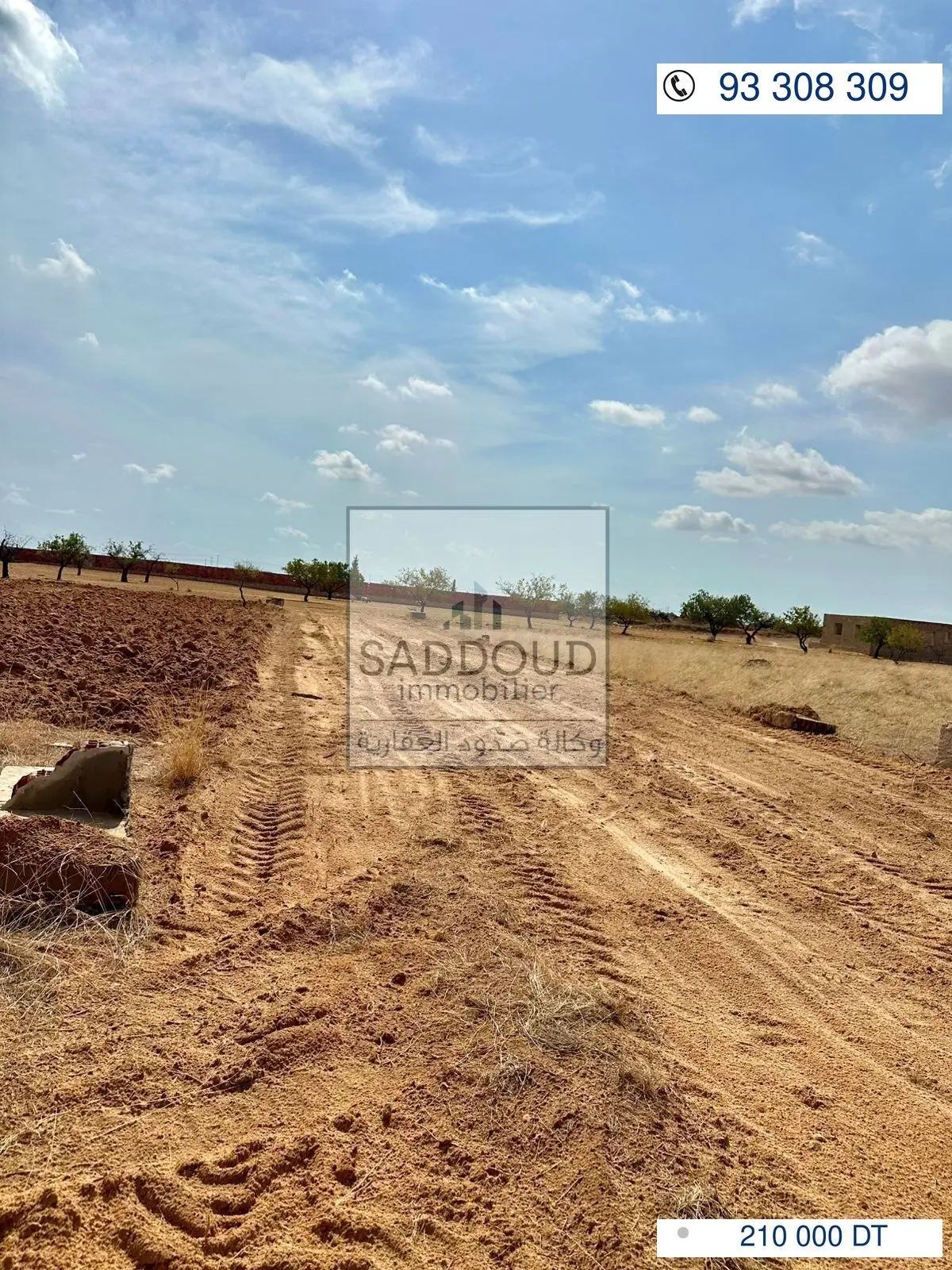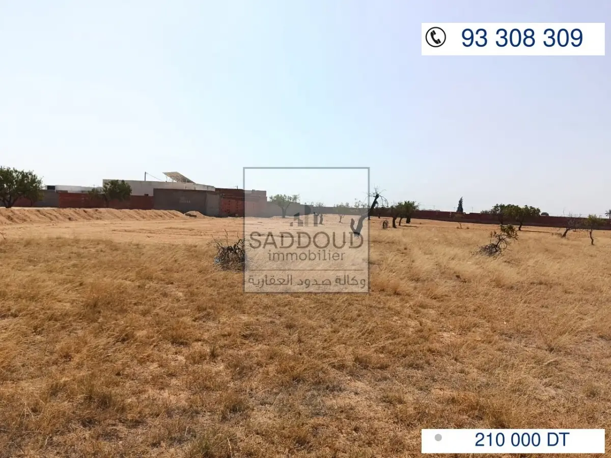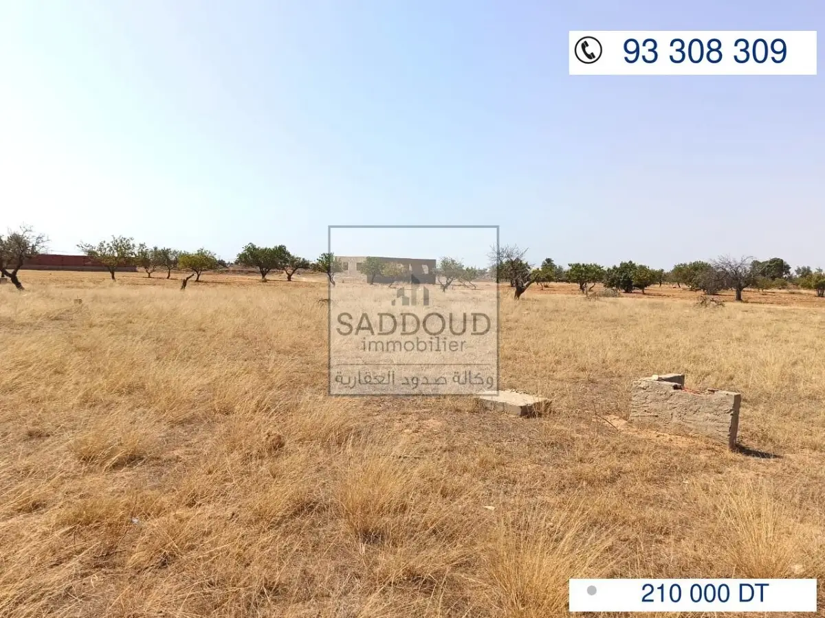 terrain 2096m² à route el Ain km 10 à gauche (ain charfi) 600 de la route principale 2 façades 48m/48m غربية شرقية titre arabe