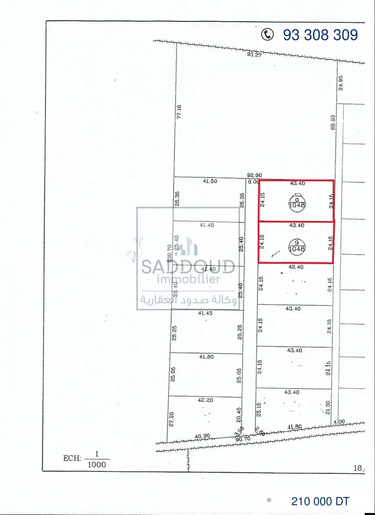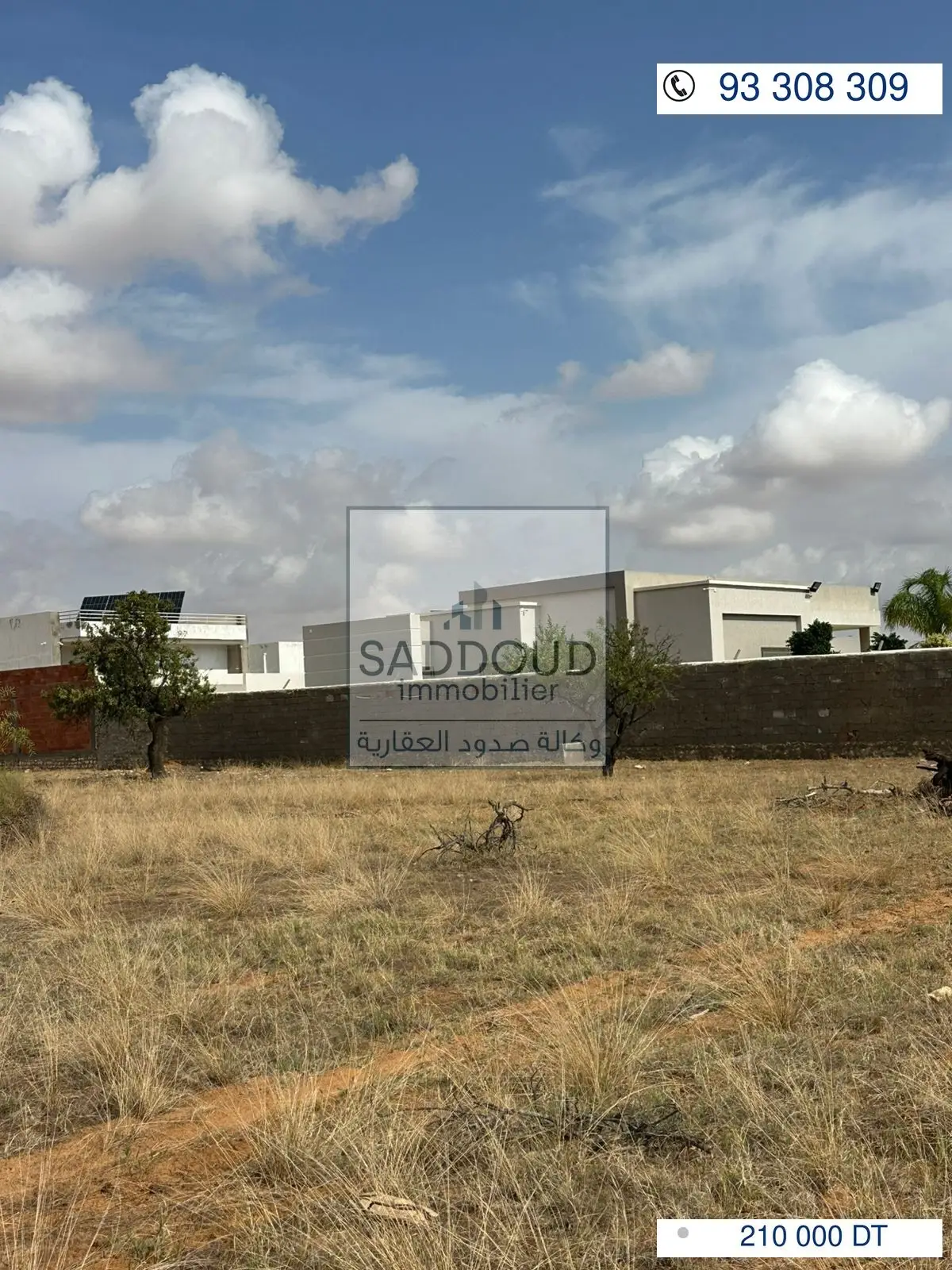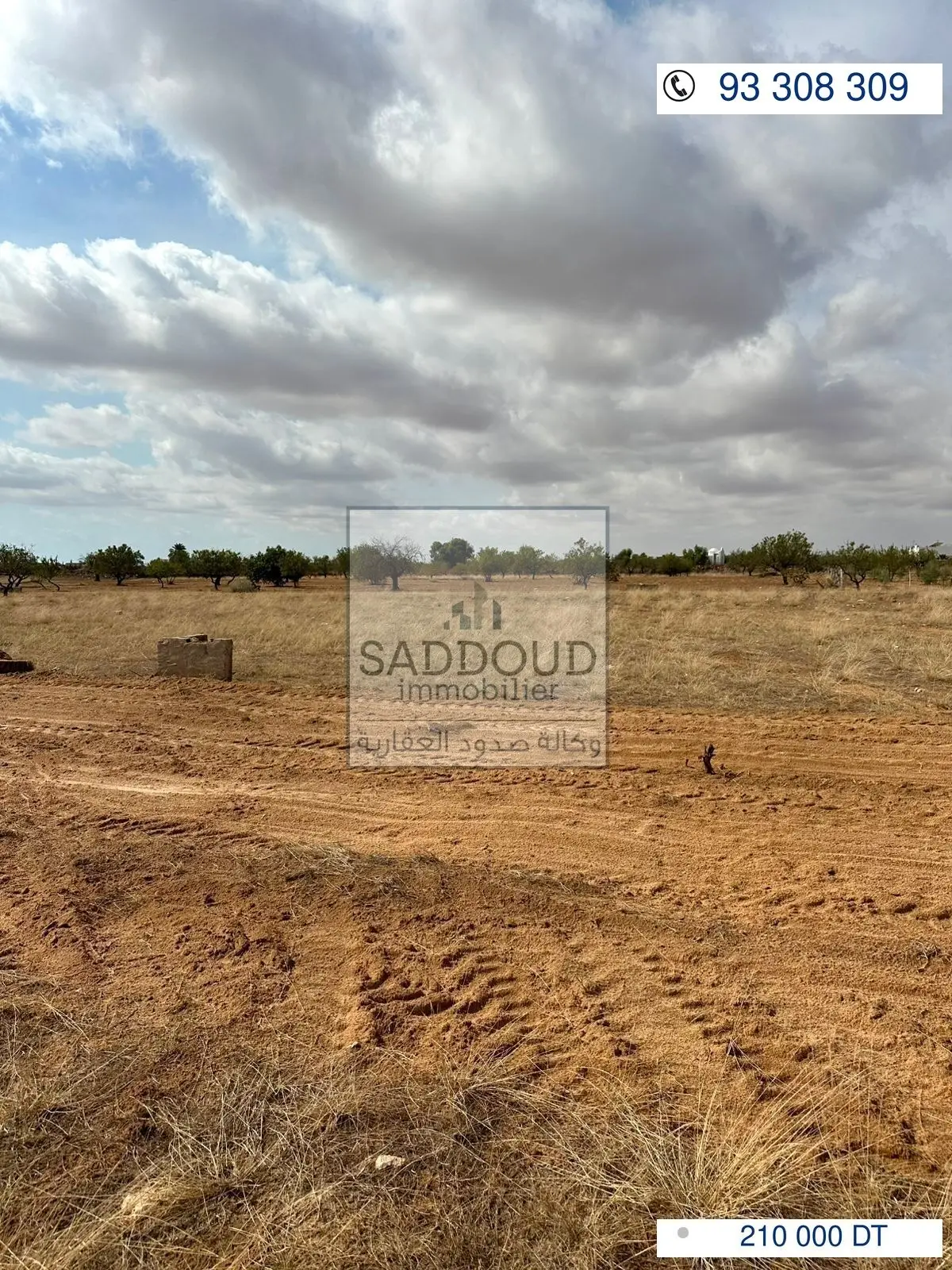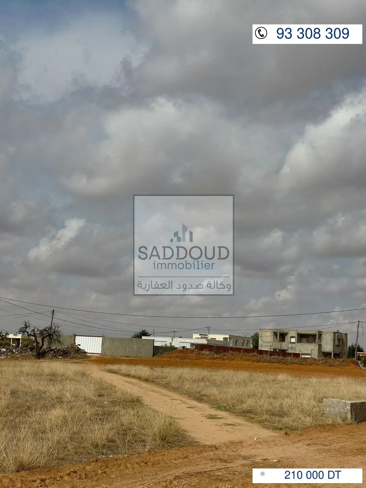 terrain 2096m² à route el Ain km 10 à gauche (ain charfi) 600 de la route principale 2 façades 48m/48m غربية شرقية titre arabe