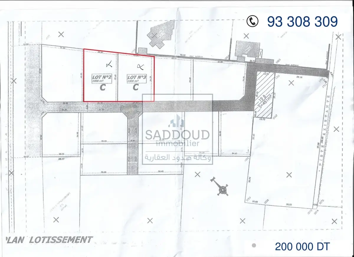 للبيع قطعتين ارض مساحة القطعة 1000م ² بطريق منزل شاكر كم9 على اليسار