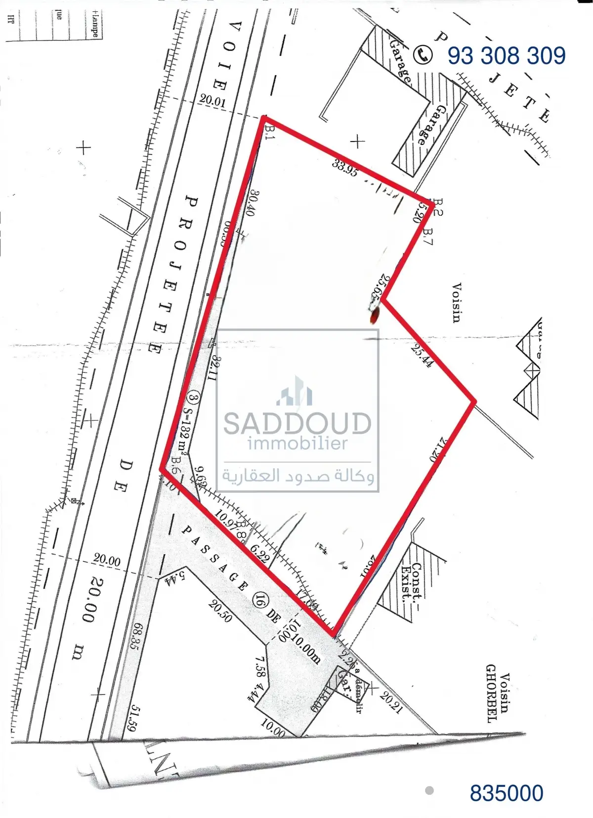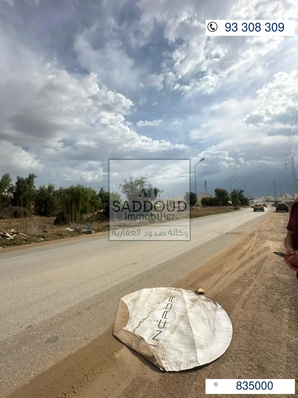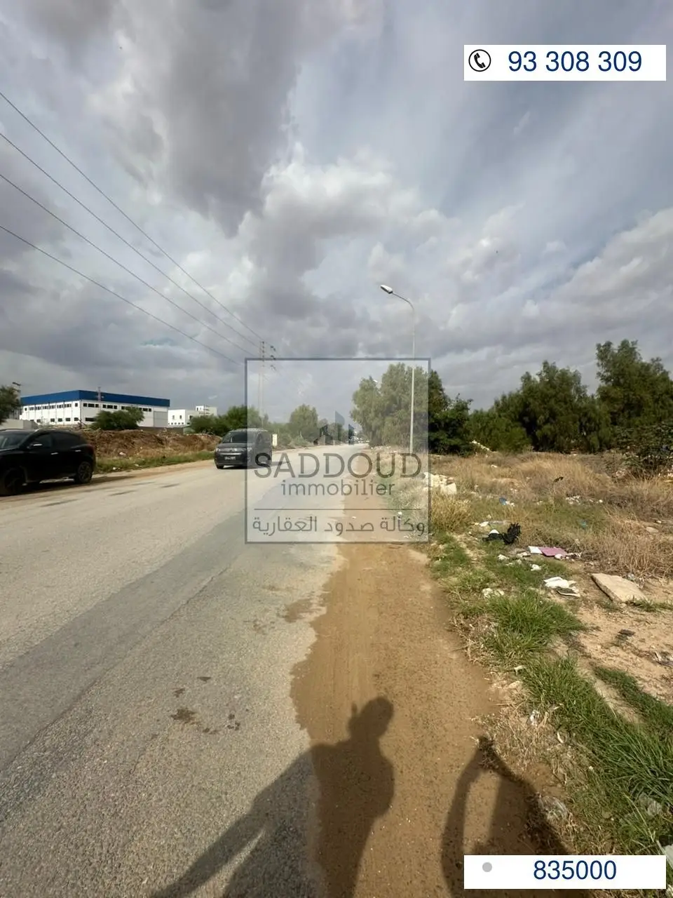 Terrain à vendre wed chaabouni ; directement sur la route principale R+2 prix : 835 000 DT 3 020 m² | Façade 66,3 m Titre foncier + titre arabe